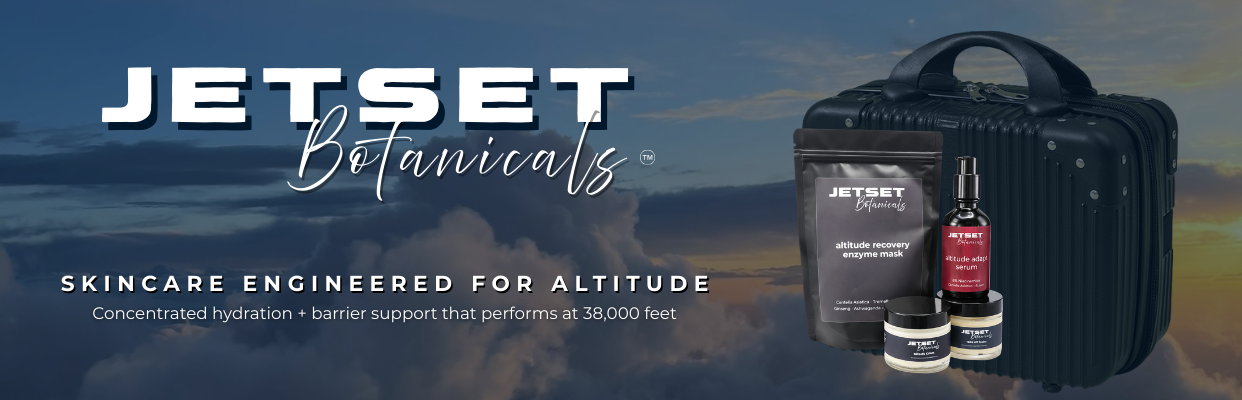 Your skin loses moisture 2x faster at 38,000 ft. Travel Skincare Needs to Be Different. JetSet Botanicals creates travel skincare engineered for altitude, extreme conditions, and the realities of life in motion, supporting skin hydration, barrier resilience, and faster skin recovery wherever you go.